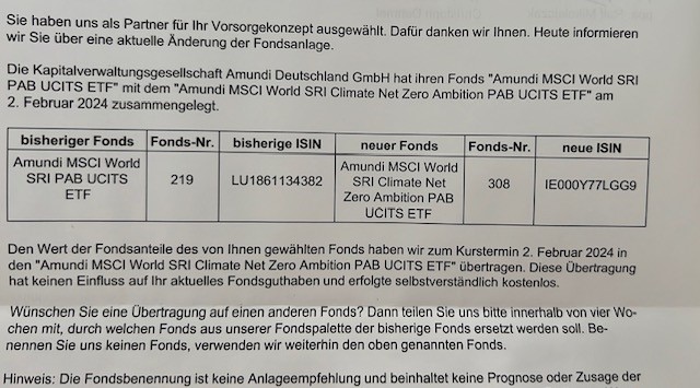 Und was passiert, wenn der ETF innerhalb der Rentenversicherung bespart wird? Auch hier gibt es eine Information des Versicherungsunternehmens: